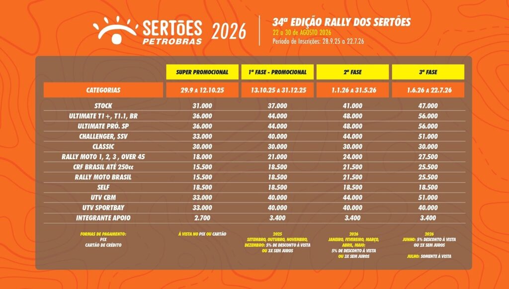 As inscrições para o Sertões Petrobras 2026 podem ser feitas através DESTE LINK.
